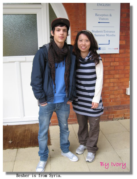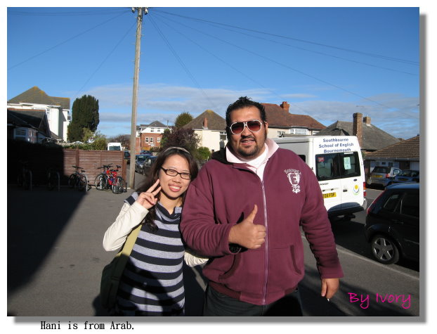 。每週五都要提早下課去換錢,常常想到就跑去倫敦玩,完全不將錢看在眼裡,阿拉伯人真有錢。他也是一位很搞笑的同學喔!常常不想寫作業,希望我坐在他的旁邊借他抄作業,但是他的英文發音常常讓我搞不清楚是自己的問題還是他的問題,後來發現是他常常亂發音,在班上常起鬨我是他的女朋友,搞笑三人組成員之一,可能我是班上唯一的女生,所以常常捉弄我