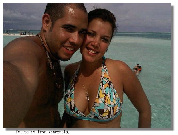 來自委內瑞拉的Felipe 搞笑三人組的成員,常常捉弄我,問我有沒有男朋友,說我是他的女朋友啊,還常常說我愛妳啊(昏倒),你明明已經有女朋友了,還說這些五四三,記得有一次課堂英文對話藉機捉弄他與Carlo,他竟然拿我是他女朋友的話題反捉弄我,真佩服他,還有一次對話,問我有沒有男朋友,我回答從來沒有交過男朋友,他知道我說的不是事實竟然指正我,我跟他說這僅僅是課堂英文對話,之後的問題,他也學我說Never,我與兩位對話的同學因此大笑,老師都不知道我們在笑什麼,這是屬於我們非常開心的上課回憶,氣氛太搞笑了