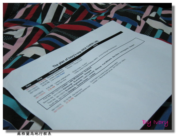 突然計劃前往蘇格蘭,爸爸問東問西 結束課程前,突然想去一趟蘇格蘭高地,當全部行程規劃完成,爸爸邊煮飯邊主動來問我車子幾點出發呀?跟哪個旅行團?有幾個人呀?平時媽媽話最多,爸爸話比較少,當遇到重要的事情,爸爸會主動來問我,我已感受到父母親的擔憂,隔天去學校發揮自己寫報告的能力,將所有詳細行程寫在excel,列印一張給他們,當我前往倫敦巴黎玩,他們依然關心我是搭哪一班飛機回台灣^_^